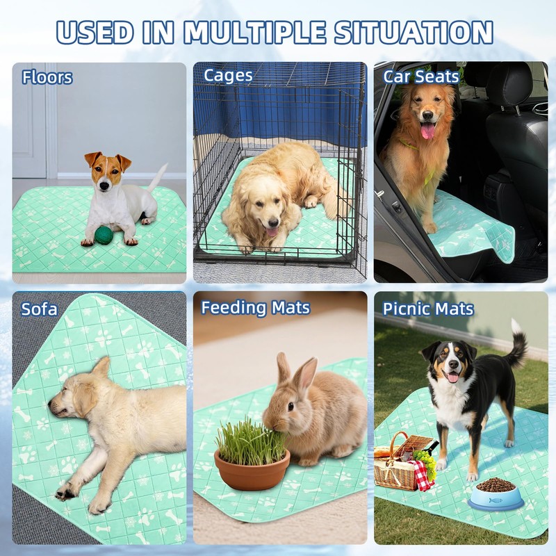Homimp Self-Cooling Mat for Dogs, 4 Pack Washable Cooling Mat&Sleeping Pad, Reusable Waterproof Dog Pee Pads, Non-Toxic, Non-Slip Potty Pads Ideal for Home, Travel & Crates, Kennel in Summer, 24"x36"