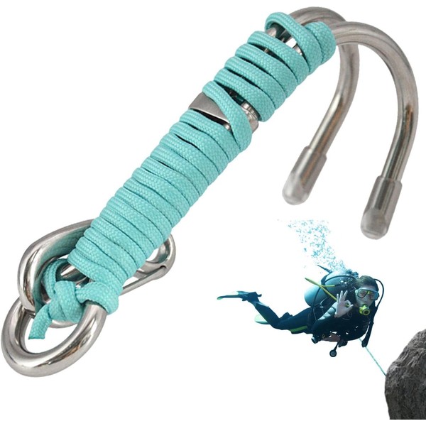 Hominas Diving Drift Hook, Diving Double Stainless Steel Reef Hook, Diving Reef Drift Hook with Cord for Cave Diving Accessories (Bright Sky Blue)