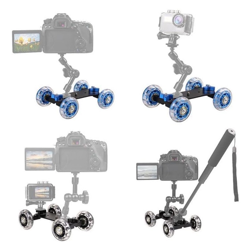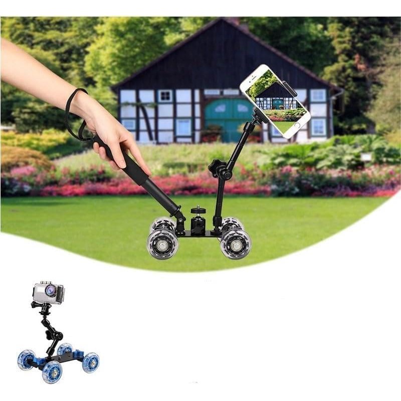 - Material: Roller track slider dolly skater auto aus aluminiumlegierung, stabil, leicht. Sie können einen ballkopf oder mobiltelefonclip installieren (ball head adpater oder telefonclip wird nicht enthalten), um mit einer actionkamera oder einem smartphone zu fotografieren