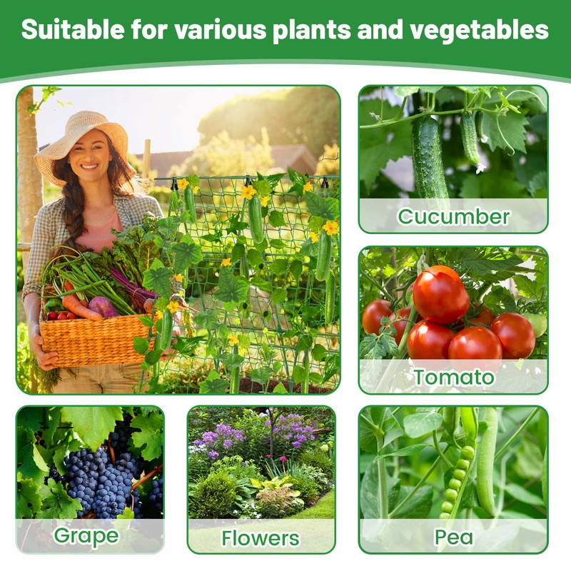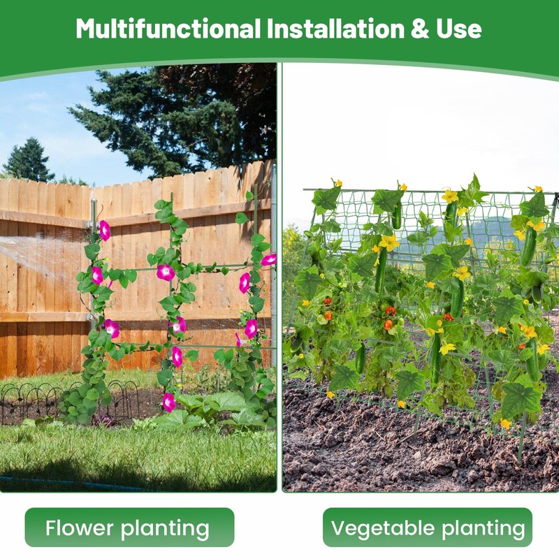 - Plants Thrive Better: Cucumber trellis is equipped with 1.2*2.4 m plant climbing net and 66ft twist ties to fix and support plants, let vines climbing upwards and avoid tangling, keep your plants off the ground, reduce rot and increase their yield