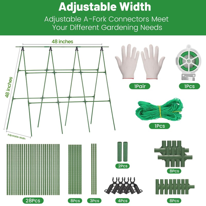 - Sturdy & Durable Trellis: Made of reliable PE coated steel pipes, weatherproof, rustproof, long-lasting, not easy to break or bend, 48" x 48" plant trellis with adjustable width and triangular design, stable and sturdy to support climbing vegetables, flowers, and fruits