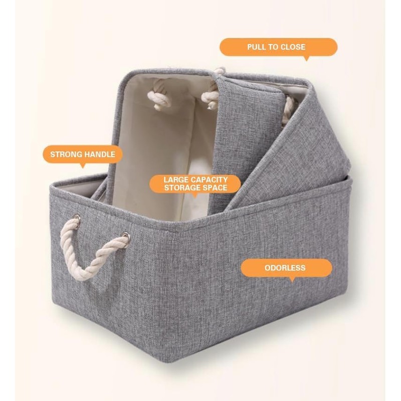 - 【Perfect Gift】— The minimalist design makes these canvas storage boxes simple yet exquisite, perfectly fit in your rooms layout and household decor, enjoy the relaxing ambiance of the soft grey and white scheme. They also make a lovely yet practical gift for friends and family for birthdays, weddings, housewarmings, or any other Gift-Giving occasion!