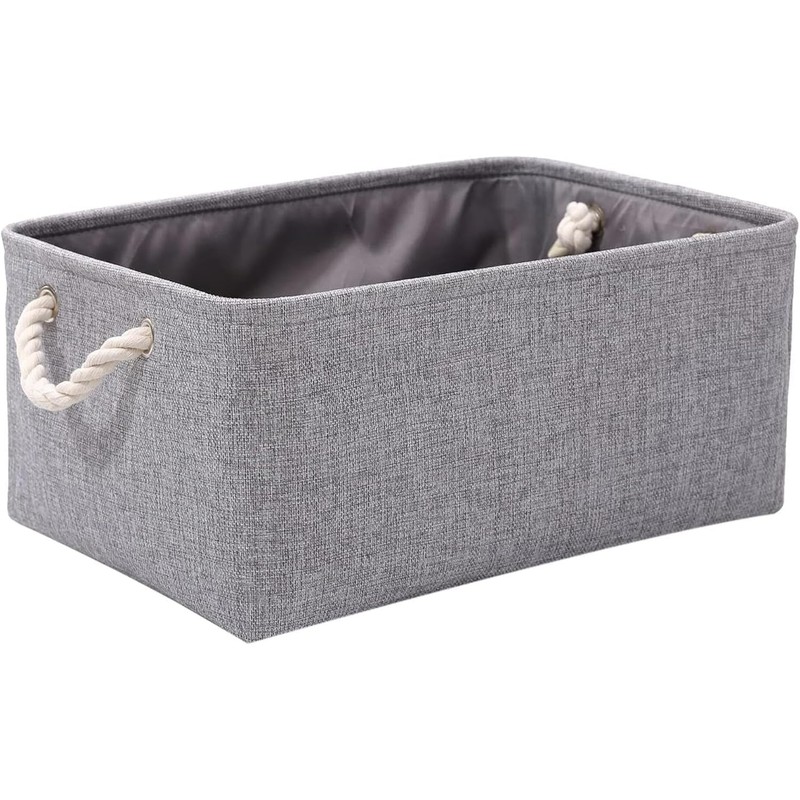 HOMKOKO Small Storage Box with Handles, Foldable Wardrobe Baskets for Storage, Canvas Linen Storage Baskets for Clothes, Toys, Towels, Office Products, 36cm x 26cm x 16cm (Grey)