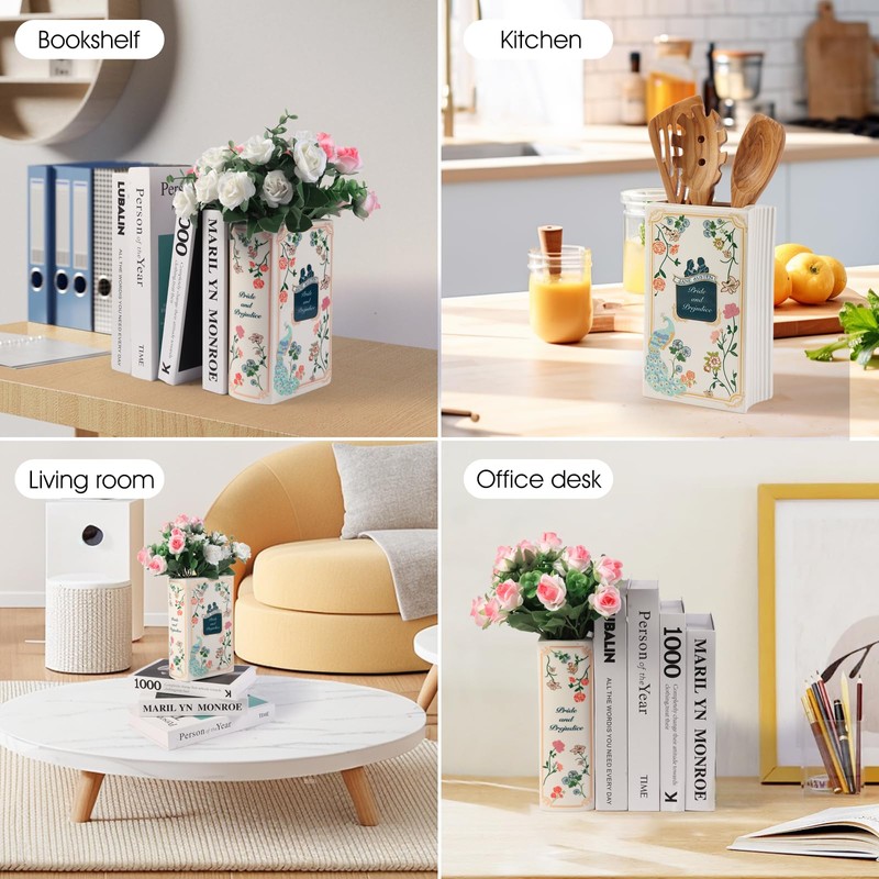 - ❤【Multi-Purpose】: Our ceramic book vase has good leak-proof performance. In addition to being a beautiful book flower vase, it is also a Pride and Prejudice book vase craft, a chic display item, which can be used to store stationery, paintbrushes, kitchen utensils or other daily small items.