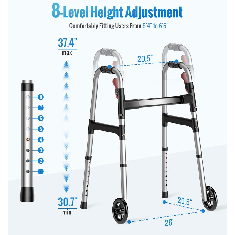 - Adjustable Height – Offers 8 height settings from 30.7" to 37.4", comfortably accommodating users from 5'4" to 6'6". Easily adjust to your ideal height for better posture, enhanced balance, and improved walking comfort.