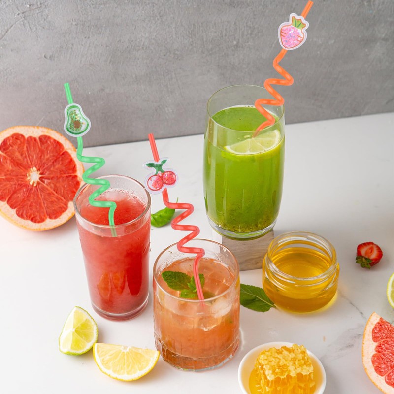 - 🍇【Glitter Fruit Themed Party Straws】: Glitter fruit themed curly party straws come in 8 different styles, painted with soft materials, the colors are bright and realistic, not easy to fade, durable and reusable, these curly party straws can be used as decorations to make your party more fun