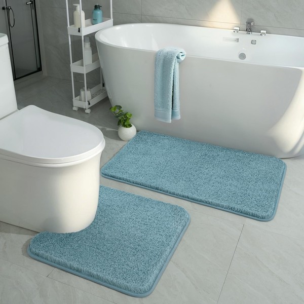 HOMORE Bathroom Rug Set 2 Piece, Soft Absorbent Bath Mats Set,Machine Washable Spa Blue Bath Rug Sets for Bathroom Non Slip,(21"x34"+21"x21") Plush Shaggy U Shape Contour Toilet