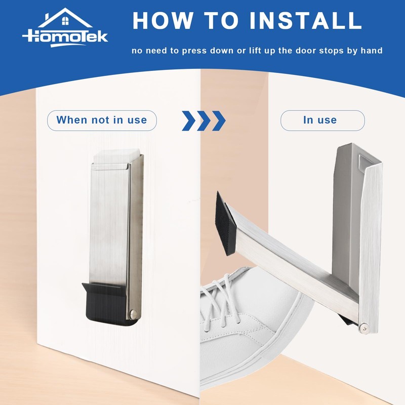 - Convenient Kickdown Design: Use a Homotek folding door stopper without bending over or using your hands. The innovative magnet design makes the door stop kicking easily. Farewell to the traditional door stopper and enjoy a new convenient experience!