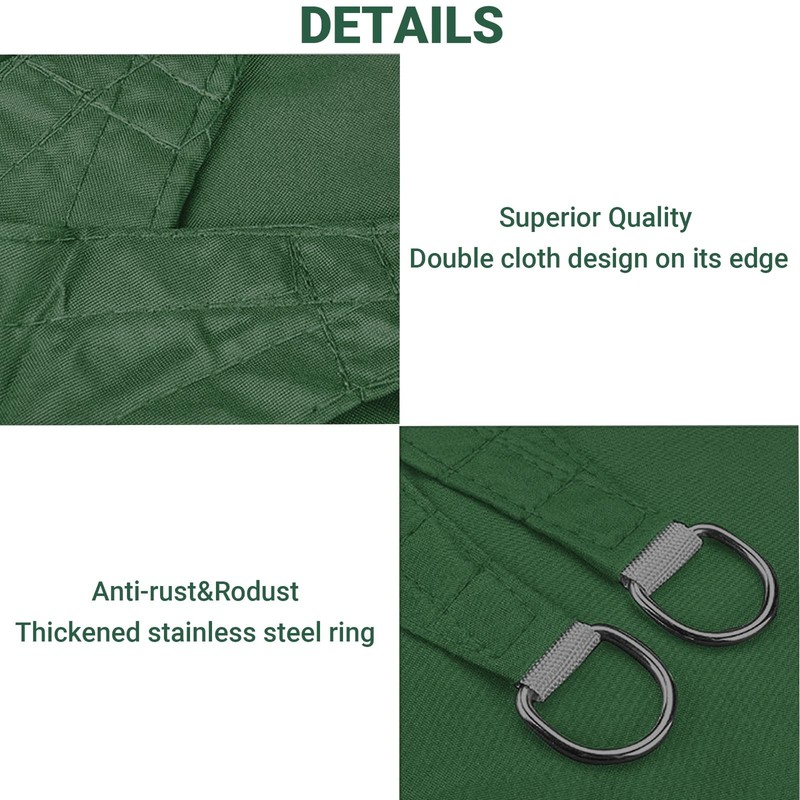 - 【UV Block & Waterproof】This shade sail is made of polyester material with PU waterproof coating, effectively block 95% of UV rays,You can also be used on rainy days.