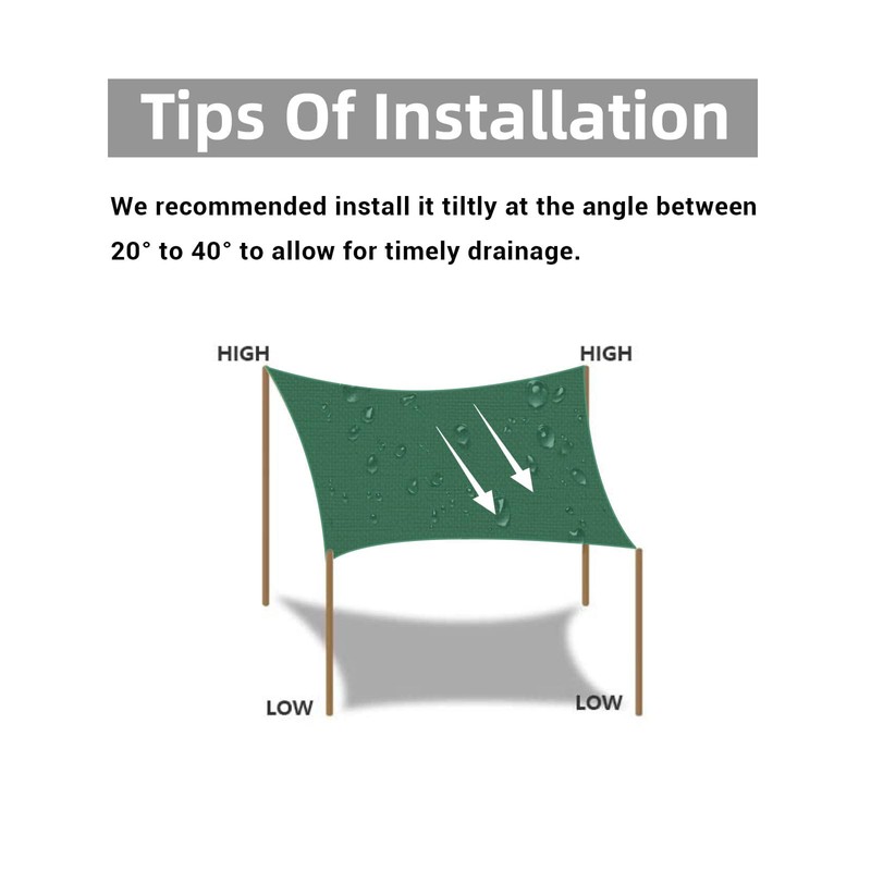 - 【Installation Suggestion】The recommended installation angle is 20-40 degrees to achieve maximum tension and also to facilitate for rainwater to run off.