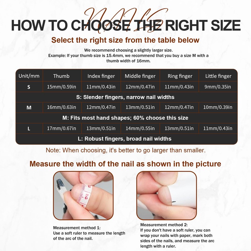 - 【Package Includes】Handmade pressed on nails * 10, Nails adhesive tabs * 24, Nail file * 1, Manicure stick * 1, storage box * 1, Glue * 1. For usage instructions, please refer to the product images.