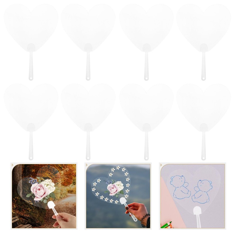 HOMSFOU 8pcs Plastic Handheld Fan Clear Blank Pocket Shape Transparent Fans DIY Painting Fan for DIY Crafts Dancing Performance Prop Wedding Summer Decor