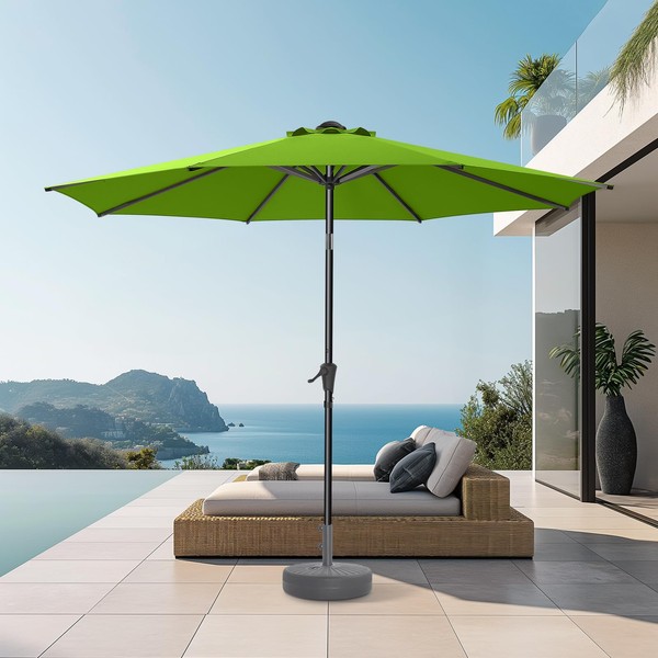 - USE AND MAINTENANCE: The 9ft patio umbrella needs to be used with a proper base (Please note that the base is not included. Please search B0CNCY6H7T basic or B0CZKT5M7H B0CZKM56XM B0CZKYP8VC with wheels). Please close the patio umbrella and tie it with the strap to keep it in optimal condition and extend its service life in extreme weather such as strong winds or when not in use.