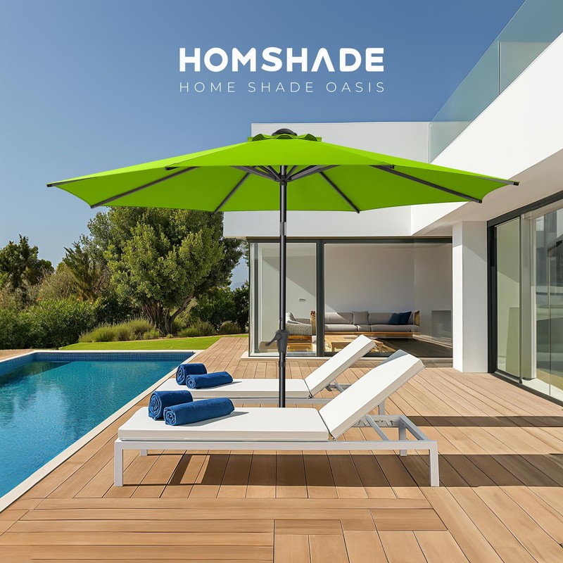 - NICE OUTDOOR OUTLOOK: HOMSHADE 9ft classic patio umbrella can greatly add color, cool shade, and cozy atmosphere to your patio and outdoor creative spaces. Suitable for a variety of outdoor environments such as patios, gardens, pools, decks, backyards, and so on. Overall dimensions: 9' (diameter) x 7.8' (height)