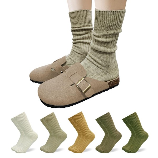 HOMSSEM Ribbed Socks Women Cozy Socks – 5 Pair Cute Womens Crew Socks (C. Leaf in Forest)