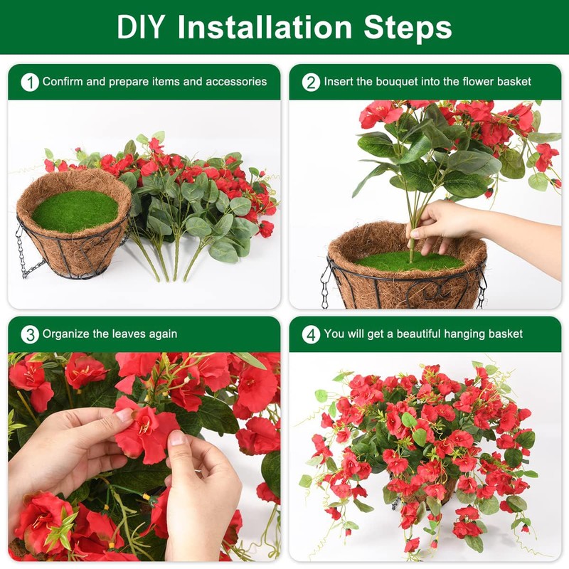 - DIY PROJECT - This is a DIY project. It only takes a few minutes to assemble this artificial flower hanging basket to get a unique garden decoration from self-creativeness.