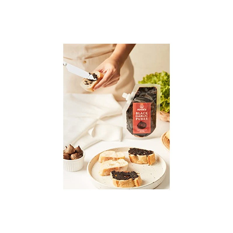 - You don’t have to worry about the bottle has broken and leaked. Our Black Garlic Puree is packed in a stand-up pouch with a spout. It is easy to use, squeeze and carry
