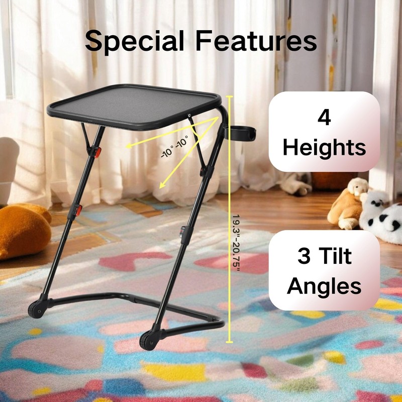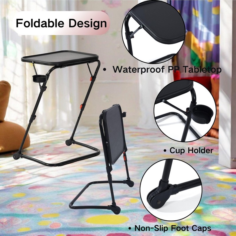 Homy Casa Folding Activity Table, Z Shaped Adjustable Height and Tilt End Table with Sturdy Metal Frame for Home Office and Study Classroom