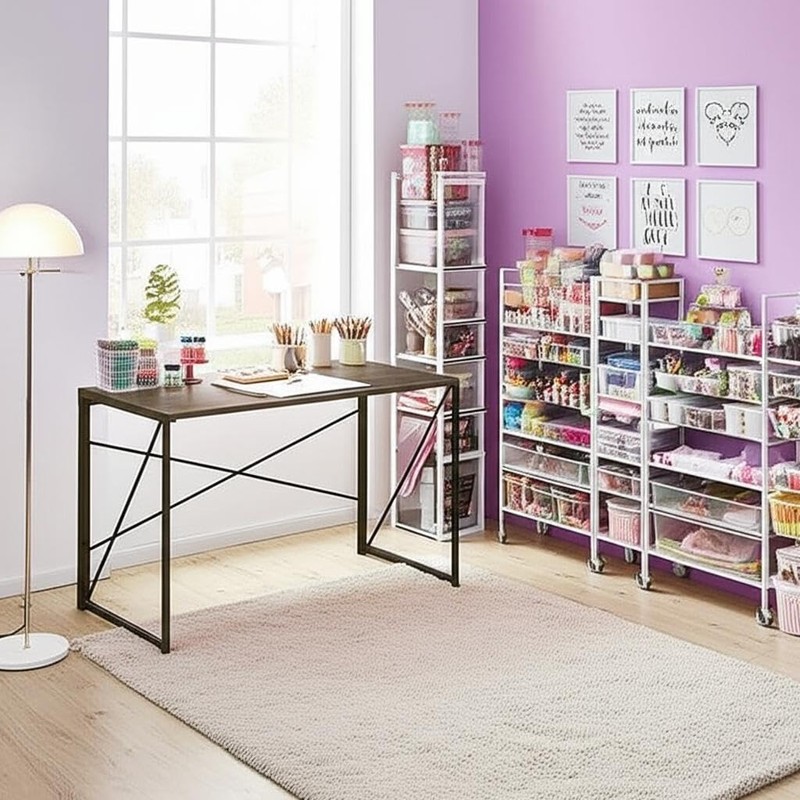 - 【Versatile Work Surface】 Spacious desktop accommodates sewing machines, art supplies, laptops, and more. Ideal for crafting, drawing, writing, and working from home.