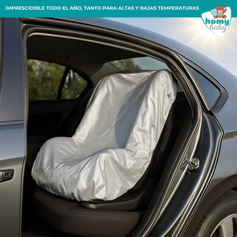 - Protect your child. Our thermal cover protects your child's car seat from the heat of the sun and protects it from high temperatures. With this cover, the internal temperature of cushions and straps can be reduced by up to 25°C. An essential accessory for all year round, ideal for both the summer heat and the winter cold.