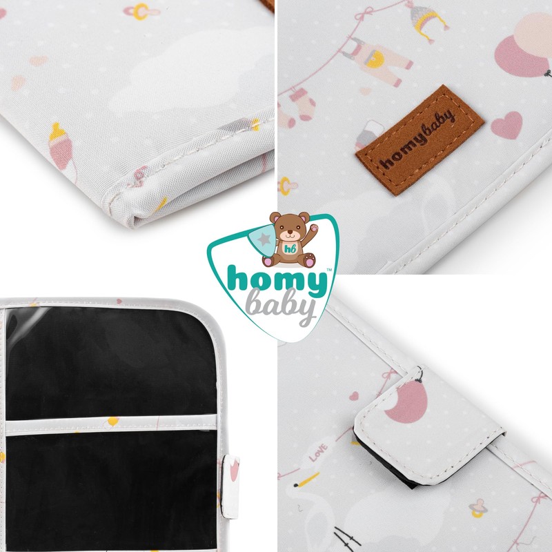 HOMYBABY® Baby Document Bag, Toiletry Bag for Babies, Gift for Babies, Organiser for Cards, Passports, Family Book (Storks)