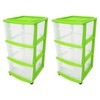 HOMZ 2-Pack Drawer Tower, 3-Tier Clear Plastic Storage Organizer Cart, Bold Lime Frame - Organizing Containers with Wheels for Home, Bathroom, Bedroom, Office, and Classroom