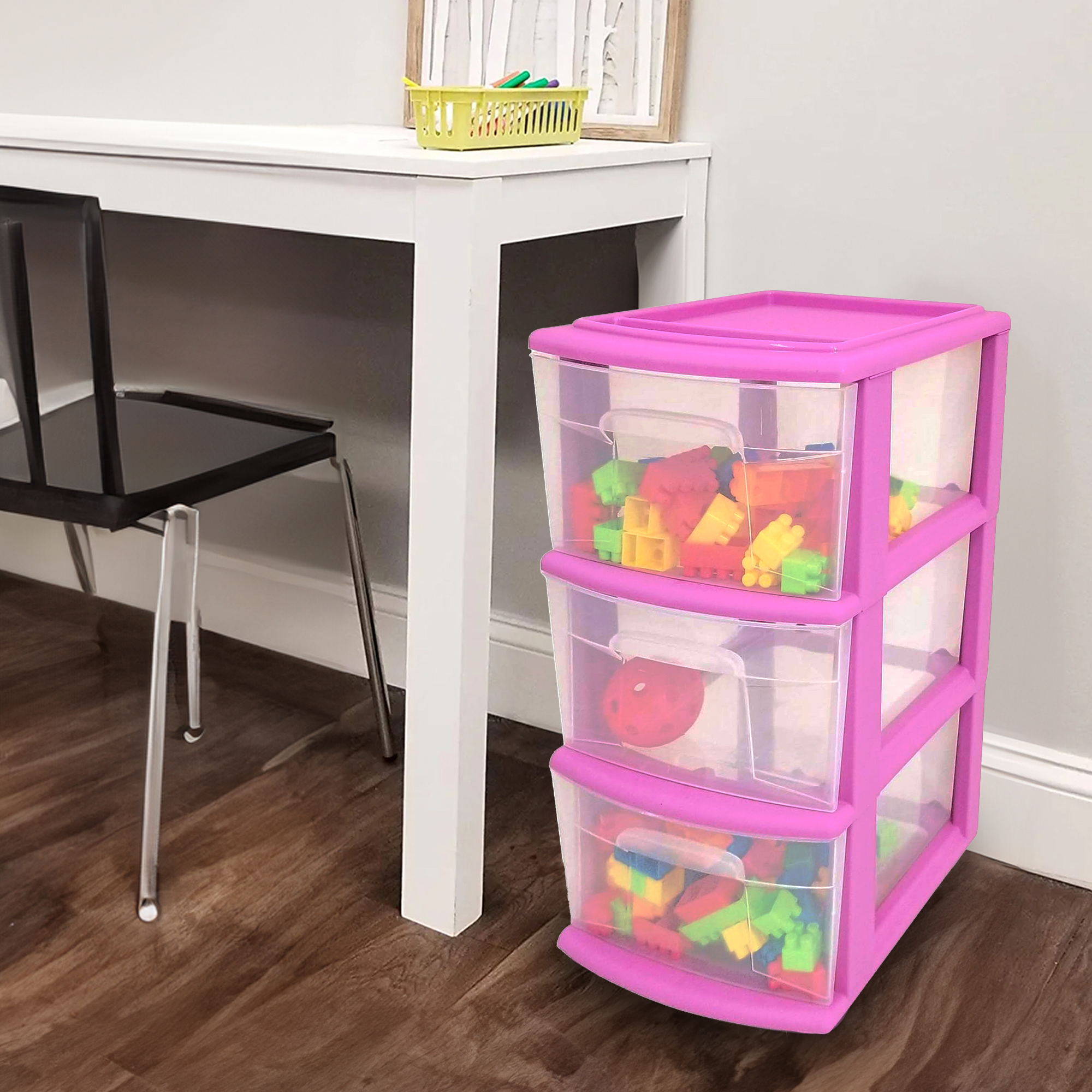 - Features 3 spacious, clear plastic drawers that each removes to transport contents with ease