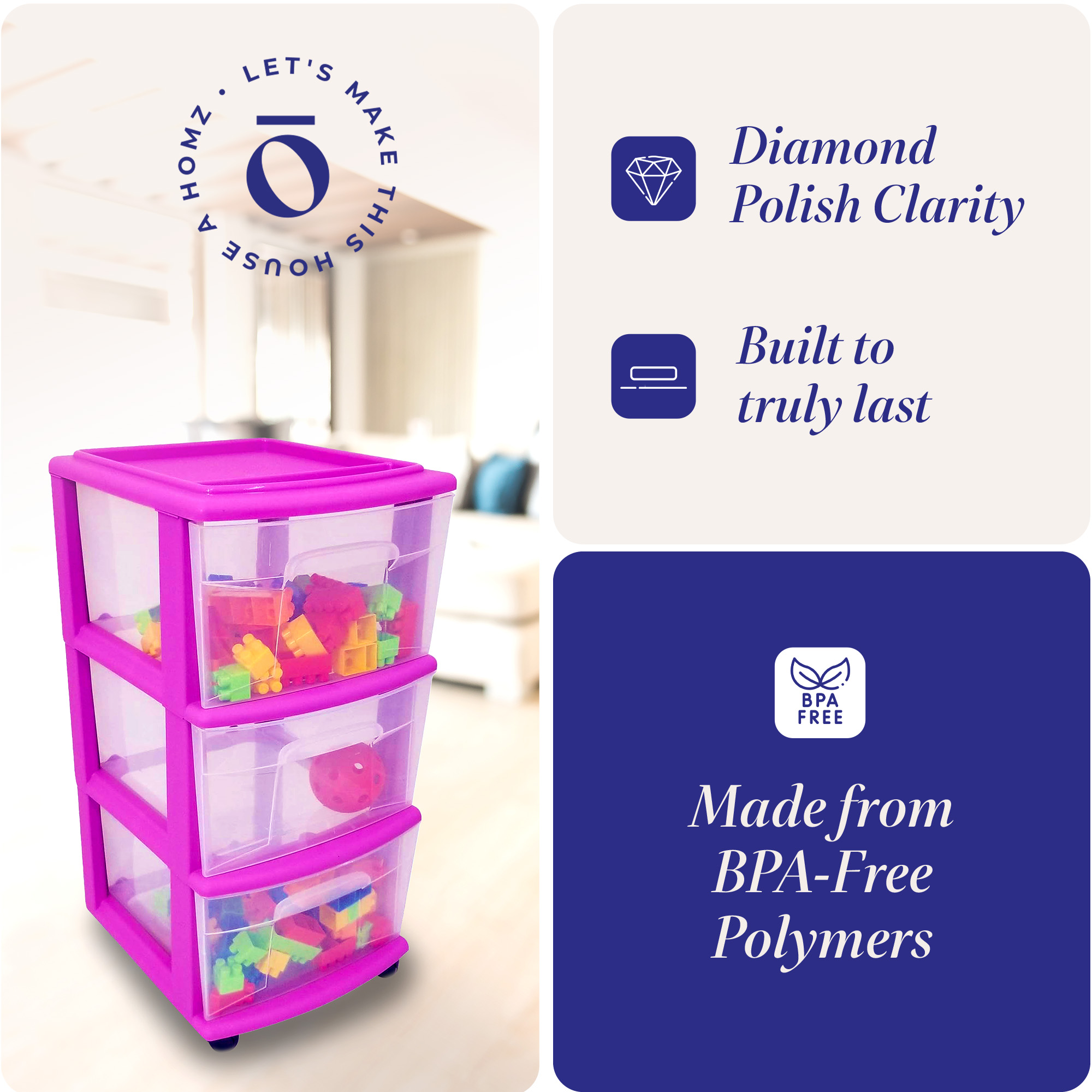 Reimagine your organizational efforts with the Homz 3-Drawer Storage Container Tower. Ensure that every facet of your dwelling finds its designated place while radiating an aura of meticulousness and efficiency.