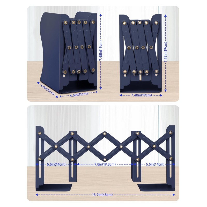 - 【Expandable and Adjustable Bookend】This adjustable bookend is flexible. It has 3 grids in total, can be stretched up to 19 inches, and can be re-sized according to the number of books.