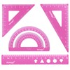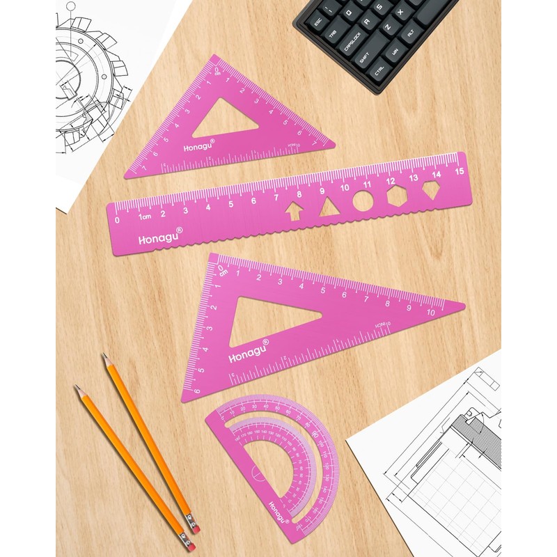 Honagu Triangular Ruler Set, 4 Pieces Aluminum Alloy Ruler, Metal Drafting Ruler, Geometric Protractor for Students, Draftsmen, Engineers, Home School Office Supplies (15cm/5.9inches, Pink)