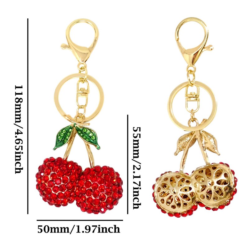 Honbay 1PCS Rhinestone Cherry Keychain Sparkling Fruit Cherry with Leaves Keyring in A Box for Bag Purse Wallet Cellphone or Car Pendant
