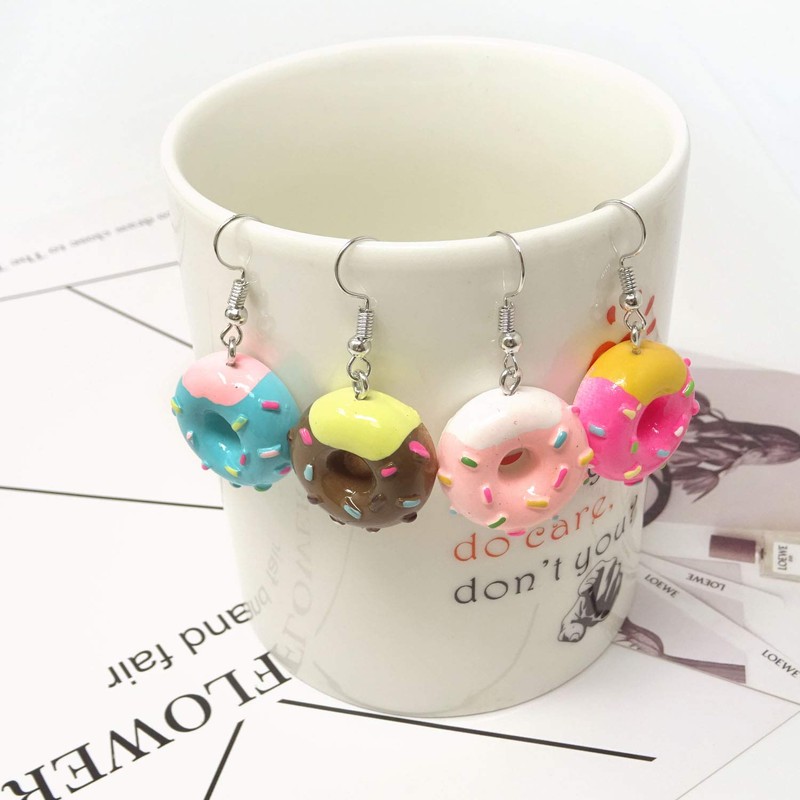 Honbay 4 Pairs of Creative Funny Donuts Earrings Personalized Dangle Earring