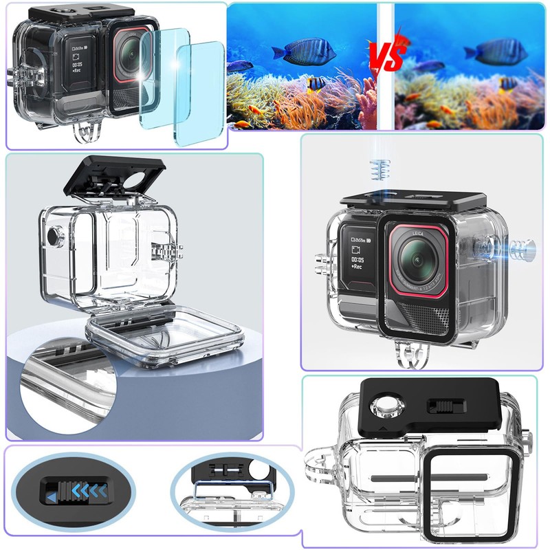 - The uniquely designed horizontal and vertical diving housing opens up more shooting angles. Whether you want to capture wide underwater landscapes horizontally or vertically, you can shoot horizontally and vertically effortlessly. Without having to remove the microphone cover, you can take photos freely and freely and enjoy the infinite magic of the deep sea.