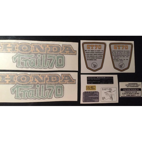 Honda CT70 K3 1973-74 "Trail 70" Complete Set frame Decals, Green Trail 70