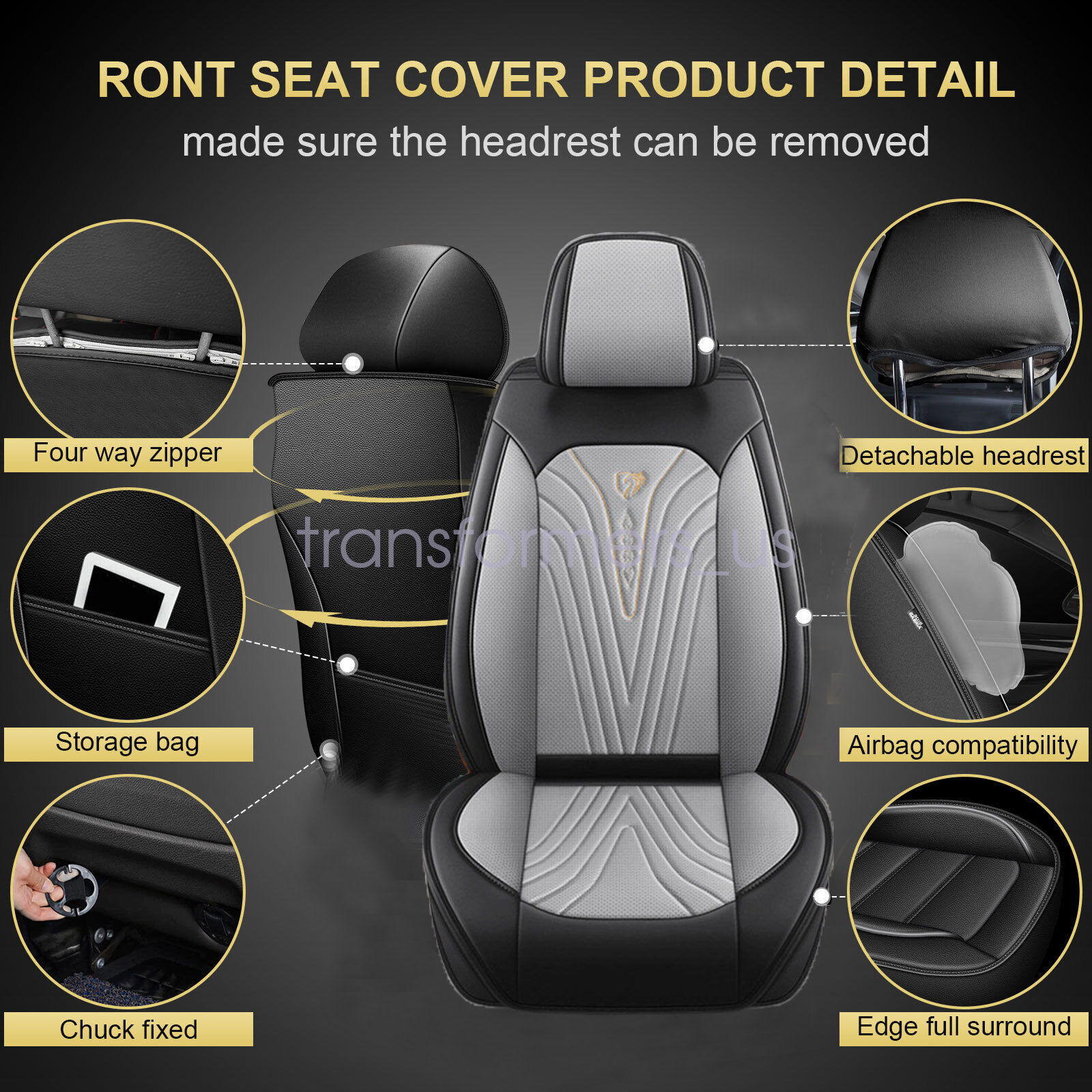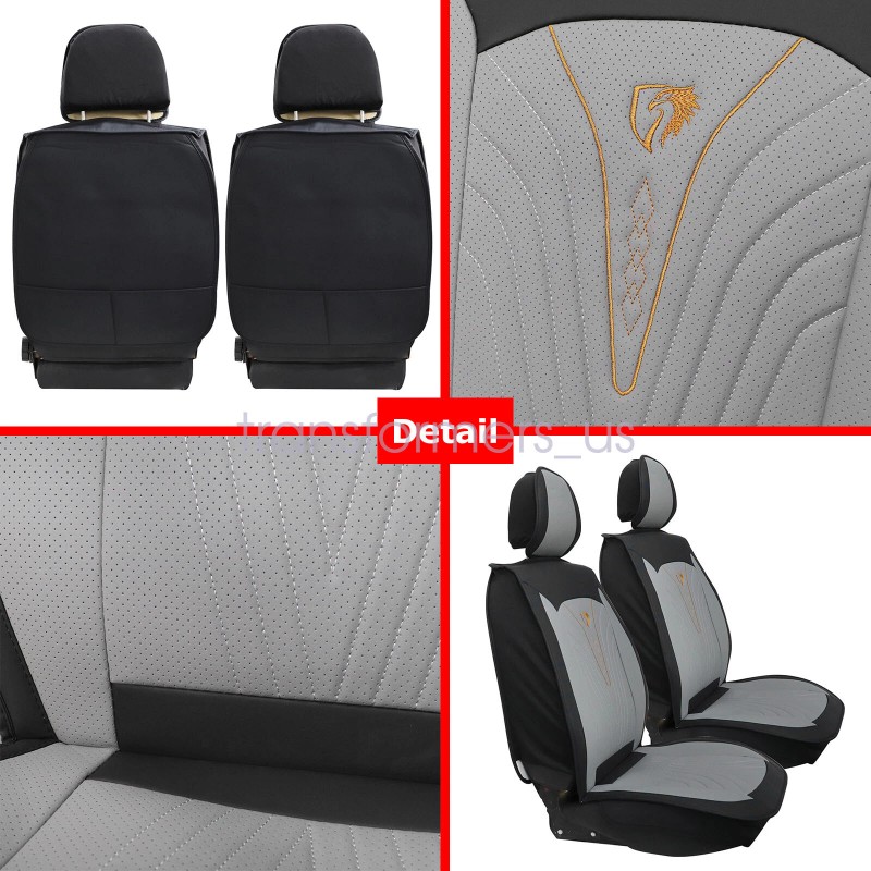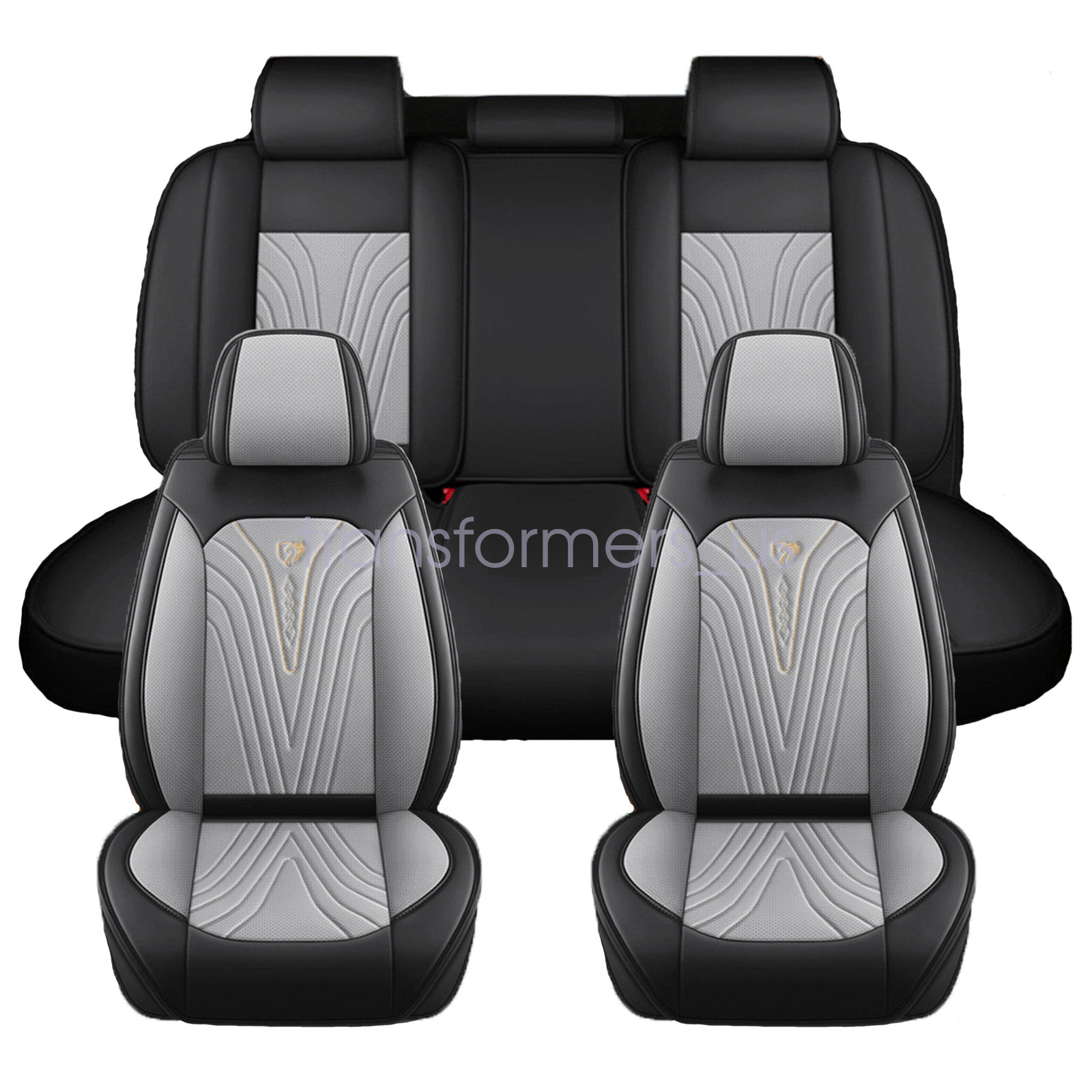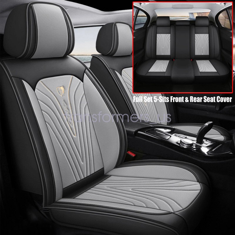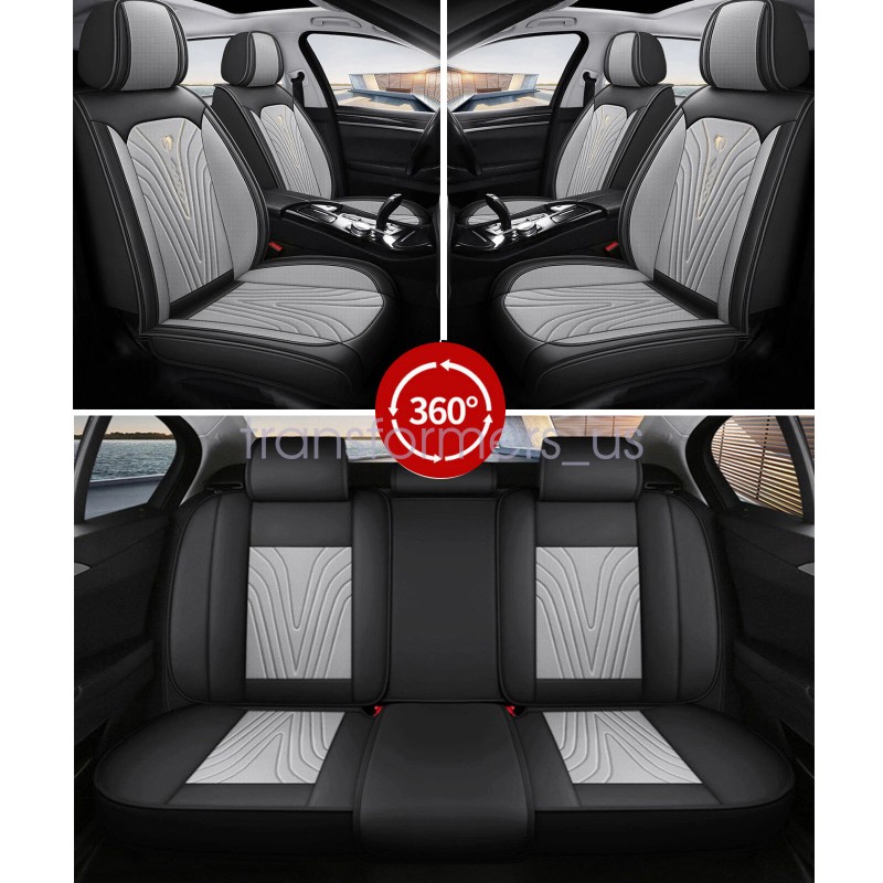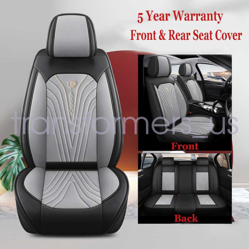 For Honda CRV CR-V Perforated PU Leather 5 Seat Covers Full Set Front & Rear Protector Cushion Gray/Black