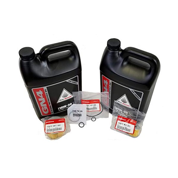 Includes everything needed for a full oil change on your Pioneer 1000. A total of 2 Gallons (8 quarts) of oil as well as the washers and o-rings needed to keep the oil in the machine where it belongs as the two filters do their job keeping it as clean as possible. All authentic Honda OEM products to insure only the best is used for your Pioneer 1000. Washers & O-rings are placed in a zip-locked bag inside the kit so they don't fall out in transit. The oil filters are still individually wrapped in the OEM plastic to keep them clean as they should be prior to installation.