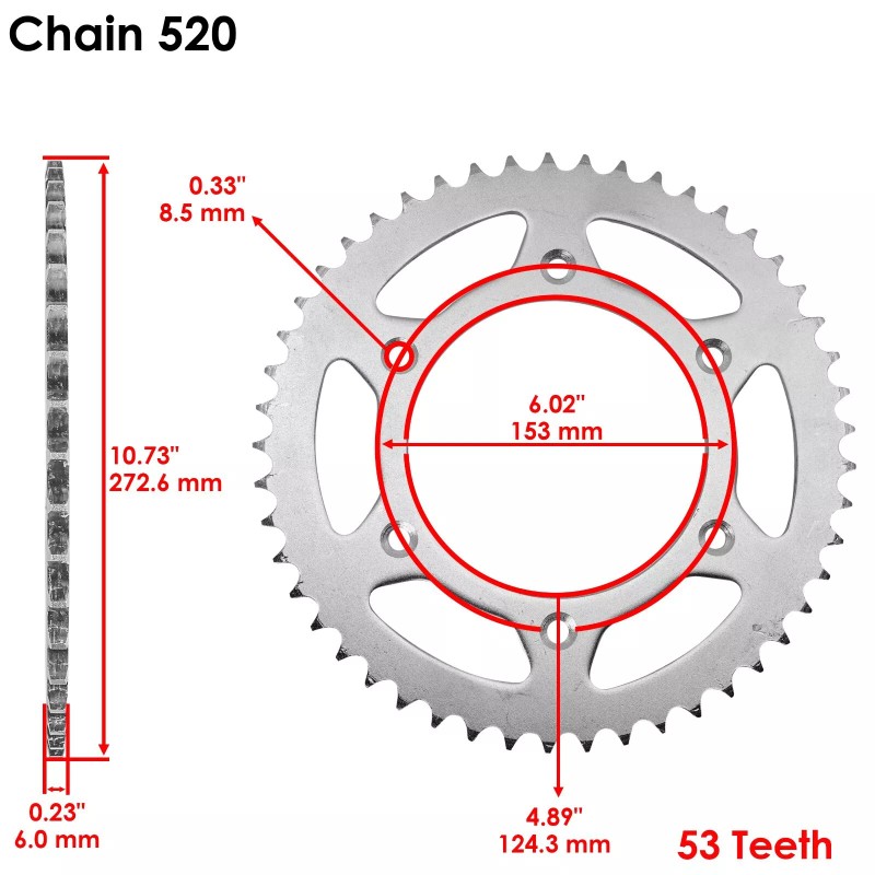 3. Rear Sprocket 53 Teeth / Material: C49 High Carbon Steel