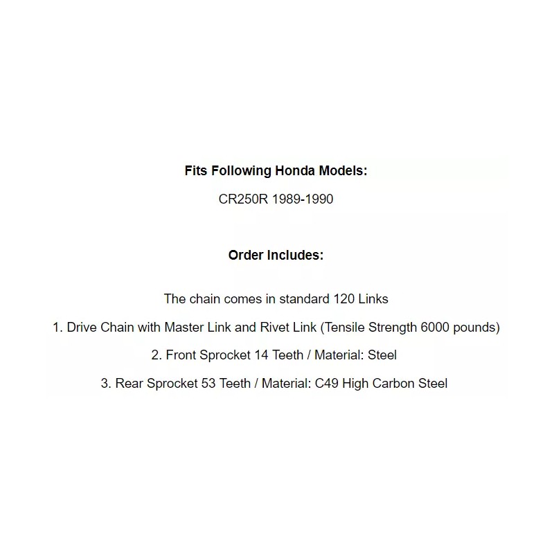Honda Red Drive Chain And Sprocket Kit for Honda CR250R 1989 1990