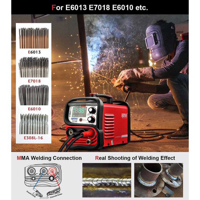 - ➠【𝐒𝐦𝐚𝐫𝐭 𝐒𝐭𝐢𝐜𝐤 𝐖𝐞𝐥𝐝】Bulit-in smart Hot-start and Arc-force provide easy, quick and reliable arc start, and stable welding current, this mini welder has ideal performance for the most E6013, E6011, E6010, E7018 and E308-16 rods.