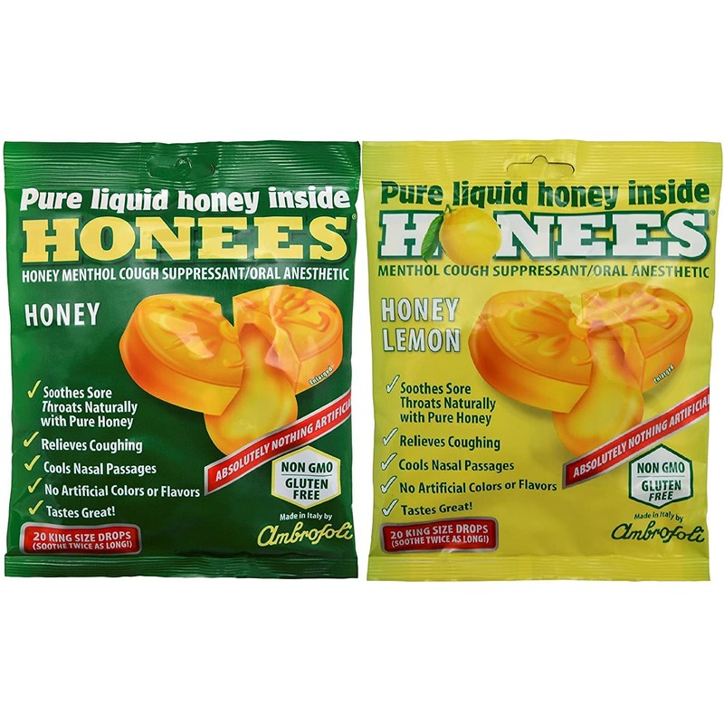 Honees Cough Drops 2 Flavors Honey and Honey Lemon 2 Pack Total 40 Drops