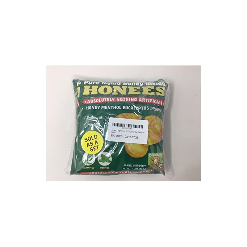 Honees Cough Drops, 20 Drops Per Bag (Pack of 3)