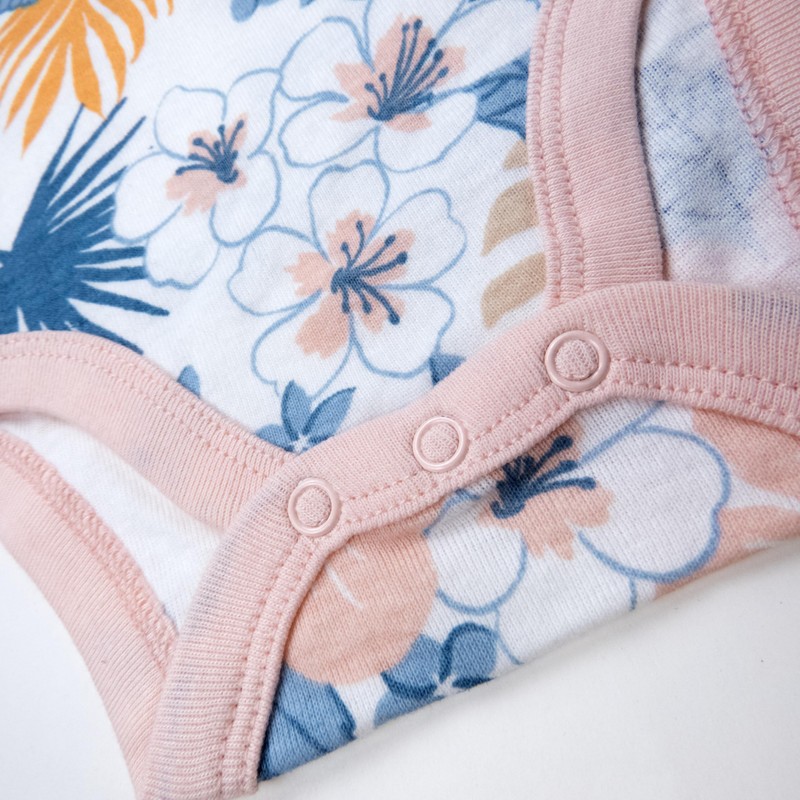 - An envelope neck that expands and nickel-free snaps at the bottom make dressing easier and changes quick.