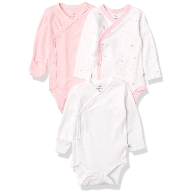 HonestBaby Boys and Girls 3-Pack Organic Cotton Long Sleeve Side-Snap Kimono Bodysuits