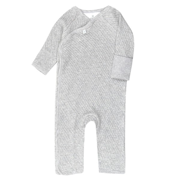 HonestBaby Romper Sets One-Piece Jumpsuit Organic Cotton for Infant Baby Boys, Girls, Unisex, Light Gray Heather Kimono Coverall, 12 Months