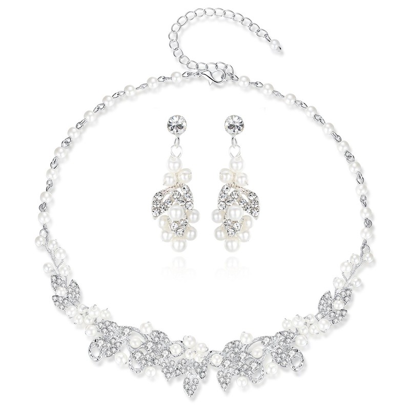 - Color: blanco y plateado. Tamaño del collar: 17,5 cm (longitud ajustable 9,5 cm). Tamaño de los arete: 3,8 cm x 1,3 cm.