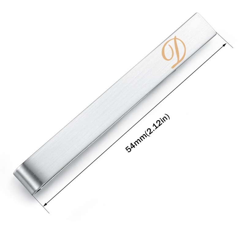 HONEY BEAR Mens Initial Alphabet Letter Tie Clip Bar - Normal Size for Business Wedding Gift,5.4cm,Brushed Silver A - Z (D)