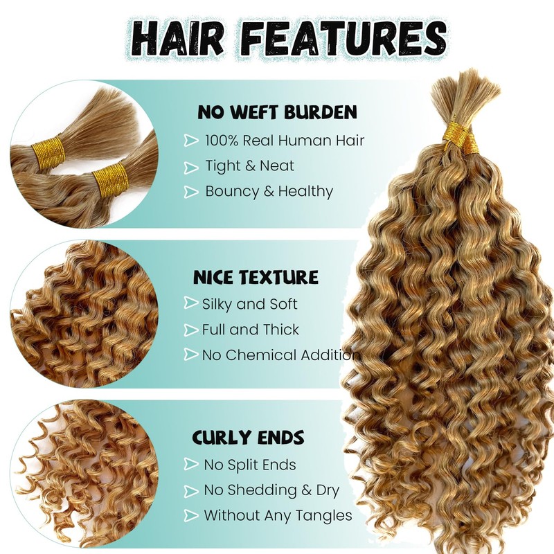 - 【Human Curly Braiding Hair Widely Used】: Braiding human hair can be used for many hairstyles,such as water wave, boho curly human hair for braiding, small bohemian braids, goddess braids, knot-less braids, micro braids, and more. Ubetta human braiding hair provide a natural look and feeling, allowing for customization in terms of length, thickness and color. It is a trusted product that empowers black women to embrace their unique style and charm while achieving multiple trendy hairstyles.