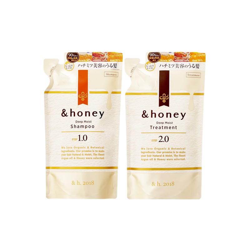 &Honey Deep Moist Shampoo & Treatment Refill Set, Super Moisturizing Organic Formula Concentrated Moisturizing