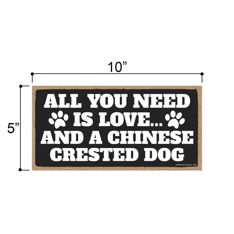 Honey Dew Gifts, All You Need is Love and a Chinese Crested Dog, Funny Wooden Home Decor for Dog Pet Lovers, Hanging Decorative Wall Sign, 5 Inches by 10 Inches