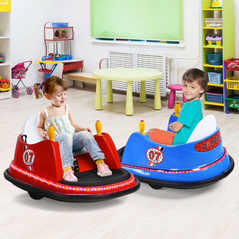 - 【Gift for Boys Girls】: This ride on bumper car is perfect addition in interactive and group games. Kids can bump each other for more riding fun. And this 6v battery powered bumper vehicles comes with the music player, flash LED lights and horn, suitable for kids to ride even at night. Perfect gift for boys girls 2-5 years.